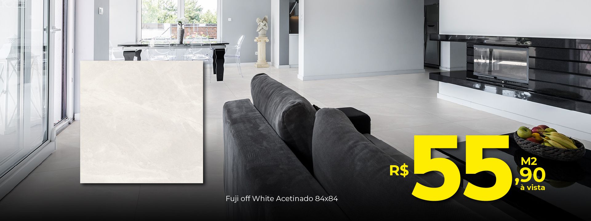 Porcelanato Delta Fuji Off White In 84X84