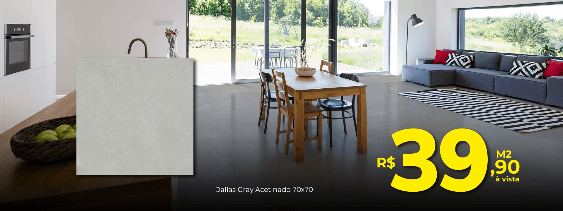 Porcelanato Delta Dallas Gray Polido 70X70